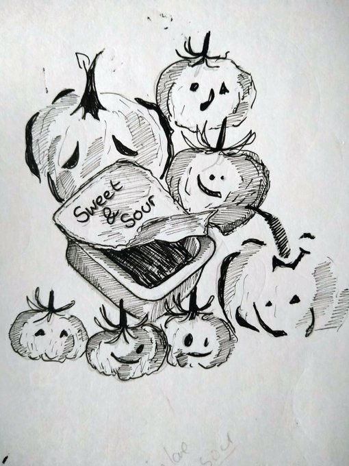 @inktober #inktober2021 #inktober2021day11 "The #NaughtyPumpkins absolutely love sweet and #Sour sauce"🤪🎃