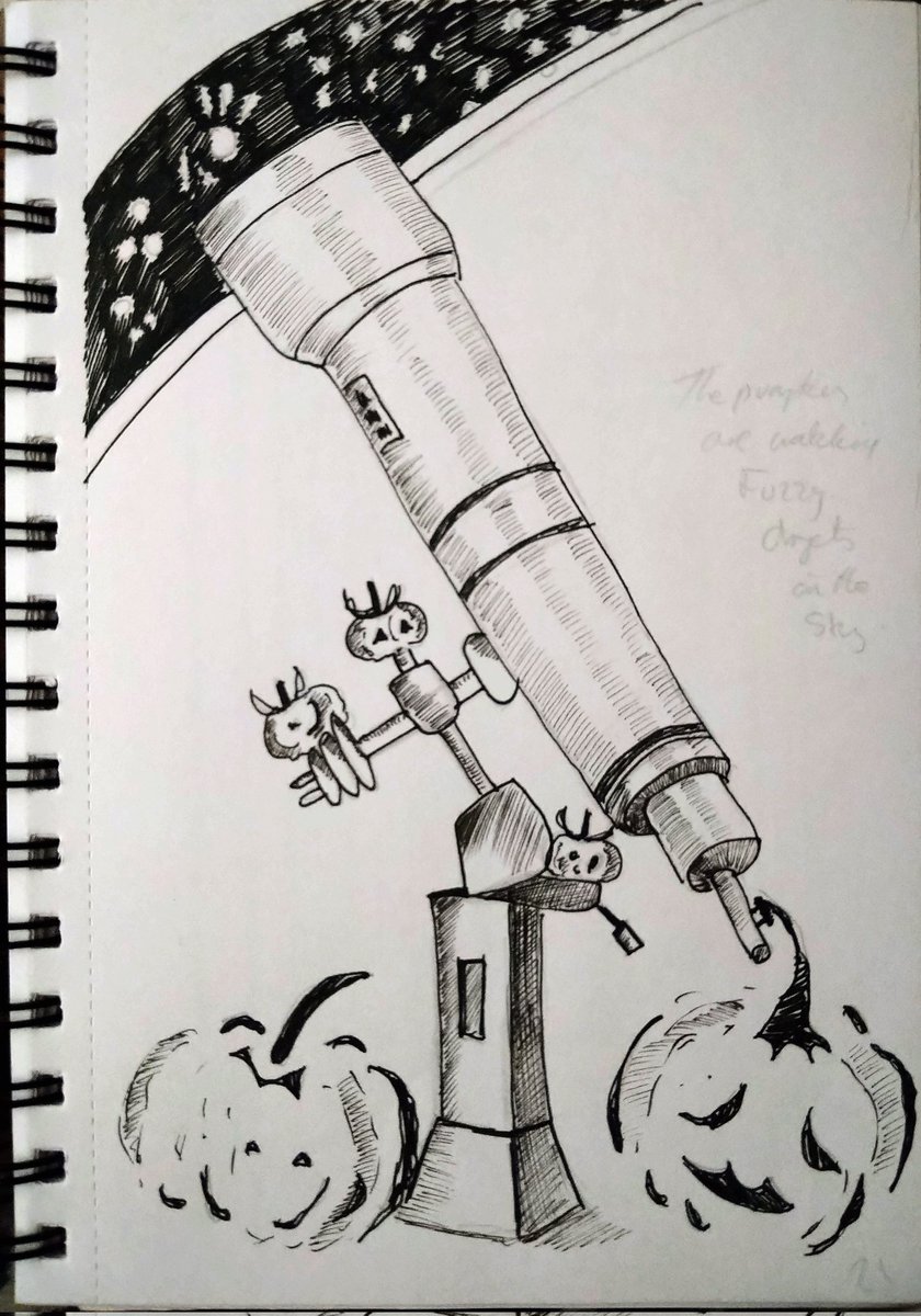 @inktober #inktober2021 #inktober2021day21 "The #NaughtyPumpkins are watching the #Fuzzy skies" uhmmm 🤔🤪🎃🧡🎃🧡 🎃🎃 #ArtistOnTwitter #art #INK #pumpkins