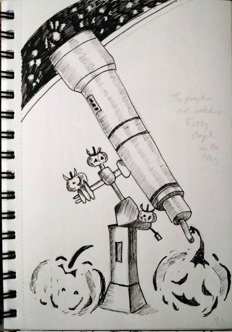 @inktober #inktober2021day18 #inktober2021 #inktober "The #NaughtyPumpkins are visiting the #Moon" #pumpkin #Halloween #ink #Space 🎃🧡🎃🧡