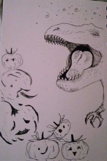#inktober2021 @inktober #inktober2021day24 "Oh nooooooo the #NaughtyPumpkins are being chased, the Wizards magic has brought an #Extinct creature into the future.....watch out for those claws" 😂😁🤪🎃🧡 #ArtistOnTwitter #pumpkin #Halloween