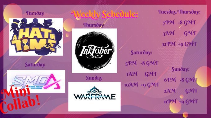 Welp, looks like next week's gonna have a karaoke stream in it, but for this week, we've got a game I haven't seen in a whiiiile- Rock and Stone! Tues: #AHatInTime Thurs: #Inktober Sat: #DeepRockGalactic Sun: Weekly #Warframe #NebuluxTransmission #vtuber #ENVtuber #VtuberEN
