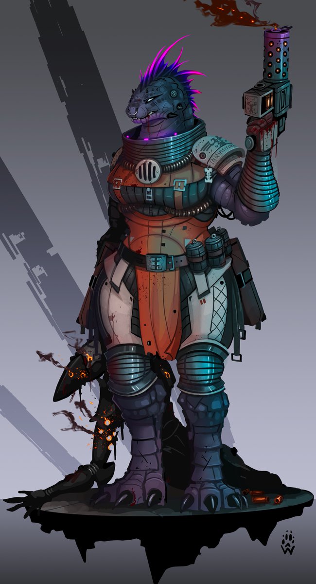 "Cass is Sorry Inquisitor. She forgot to capture intruder alive again." Necromundan Scaly Abhuman #necromunda #warhammer40k #conceptart