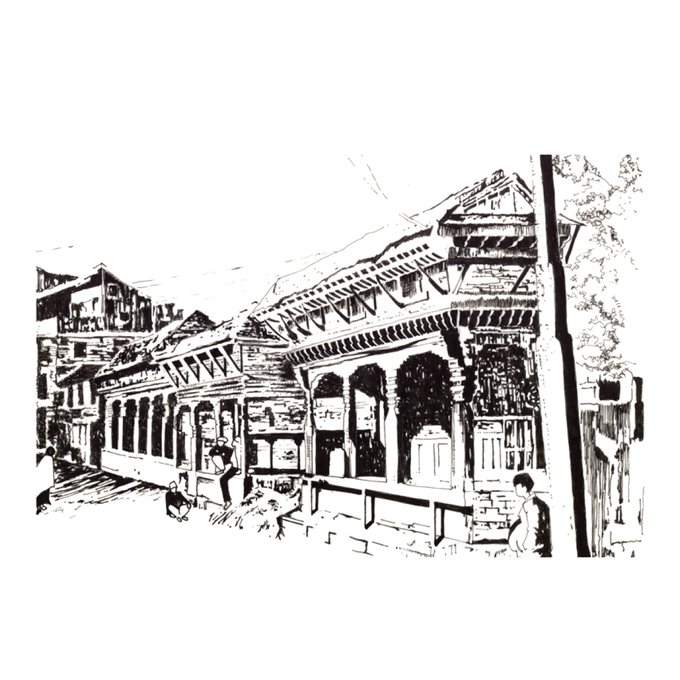 The year is 1990. I am young and not very good at storing my drawings. This is one of the earliest ink sketches, I have with me. Surrounded by the #Himalayas , the village of #Kirtipur outside #kathmandu #nepal #inktober #inktober2022 #penandink