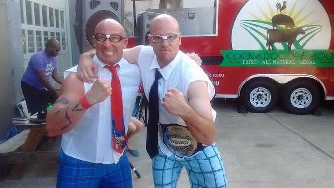 @GougePro 8/21/15 @JZ_Graham #gougewrestling #NerdHerd #CoffeeCorps #Cosplay #NerdPower #geekswithphysiques #worldsstrongestmathletes 🤓☕️