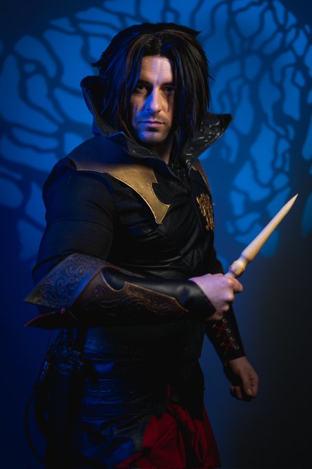 "Well I'm armed, with a ..a stick, hmmm? So, I'll understand if you want to run away now! " Ph: @jsbissett Armour By @cosmicworkshop Wig By @nomes_cosplay #cosplay #netflixcastlevania #castlevania #castlevaniacosplay #trevorbelmont #trevorbelmontcosplay #syphabelnades #vampire