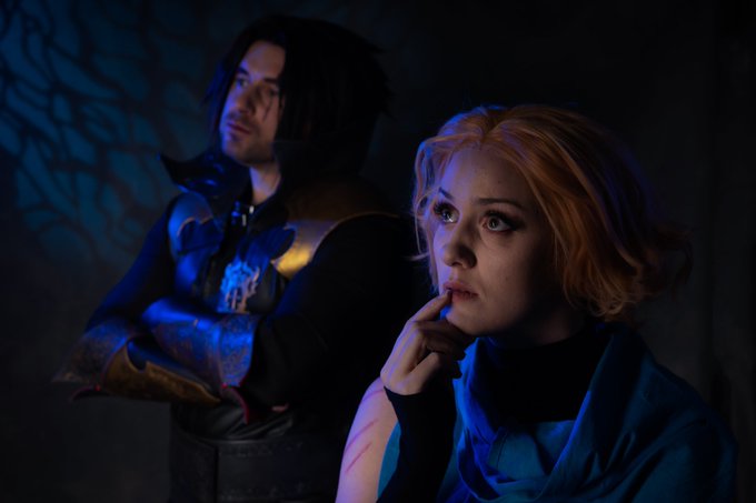 Serious Cosplayers being serious. Sypha Belnades: @kyokyodesigns Lenore: @celestial_wanderer Ph: @jsbissett Armour By @cosmicworkshop Wig By @nomes_cosplay #cosplay #netflixcastlevania #castlevania #trevorbelmont #syphabelnades #richardarmitage #vampire #anime #netflix