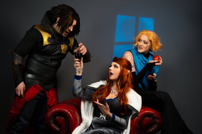"... I'm not looking at you Sypha" "You're going to" Sypha Belnades: @kyokyodesigns Ph: @jsbissett Armour By @cosmicworkshop Wig By @nomes_cosplay #cosplay #netflixcastlevania #castlevania #castlevaniacosplay #trevorbelmont #syphabelnades #vampire #anime #costume #netflix