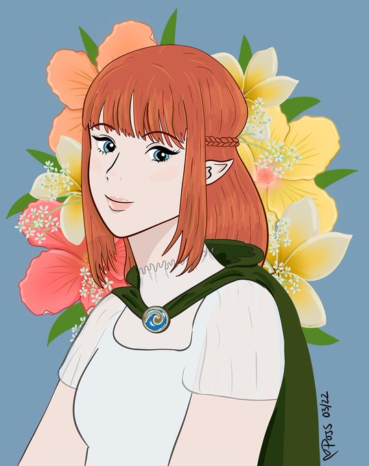 [Meet my girl Phynn Raerdrimne, Half-Elf Cleric. She's got a big world to go explore, friends to meet, and landscapes to paint(and dogs to pet).] #dnd #newcharacter #theadventurebegins #dndart