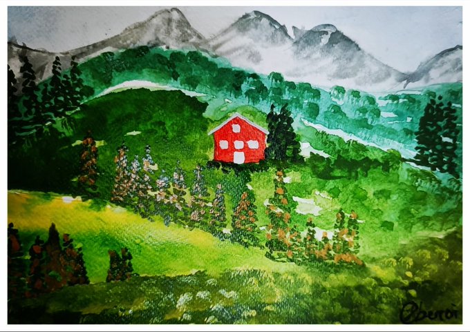 Tried a different method today... it's called painting the emotions in art therapy, where you let your mind wander and let the paints and brushes do the work. How is it? Secluded #naturelover #newstyle #arttherapy #colortherapy #landscapes #watercolorpainting #artistsontwitter