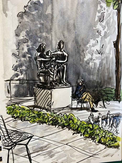 View of Henry Moore’s Family Group at @MuseumModernArt Sculpture Garden this weekend. I saw the wonderful Matisse: The Red Studio exhibit. #art #museum #ink #watercolor #NewYorkCity