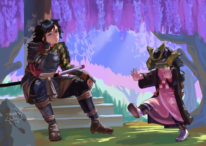 Tomioka babysit Nezuko in 15th century setting, since i really want to draw a samurai armor #鬼滅の刃 #kimetsunoyaiba #kny #DemonSlayer #nezuko #giyutomioka