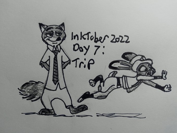 Inktober 2022 Day 7: Trip. Have a nice trip, see you next fall. Hyuck hyuck hyuck hyuck hyuck! #inktober2022 @inktober #Inktober #Zootopia #JudyHopps #NickWilde #inktober2022day7