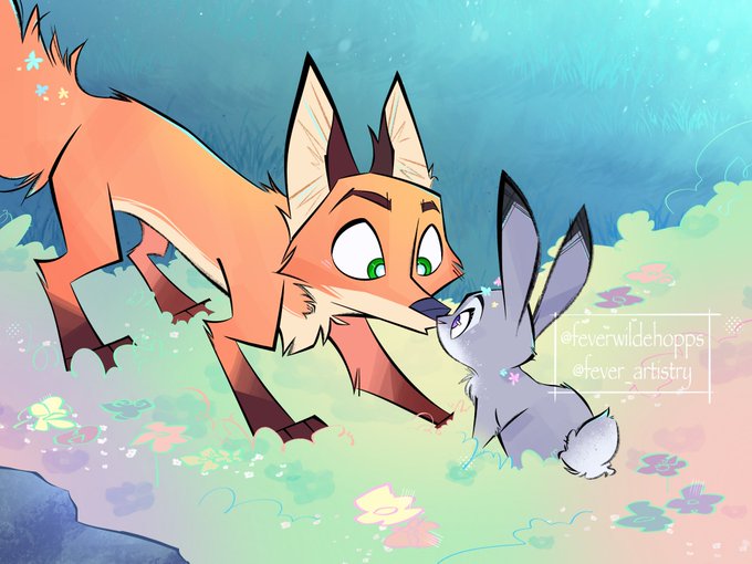 Feral #WildeHopps based on a frame from Disney’s Bambi 🌼 #Zootopia #NickWilde #JudyHopps #DisneyFanart