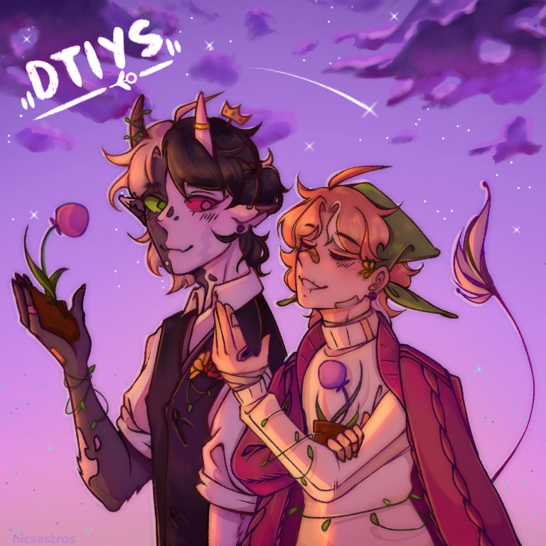 Man I’m on fire today, two post in one day what- anyways here’s a dtiys entry for the amazing @nicsastros :D ft. @tommyinnit @Ranboosaysstuff #NicsDTIYS #ranboofanart #tommyinnitfanart #alliumduofanart