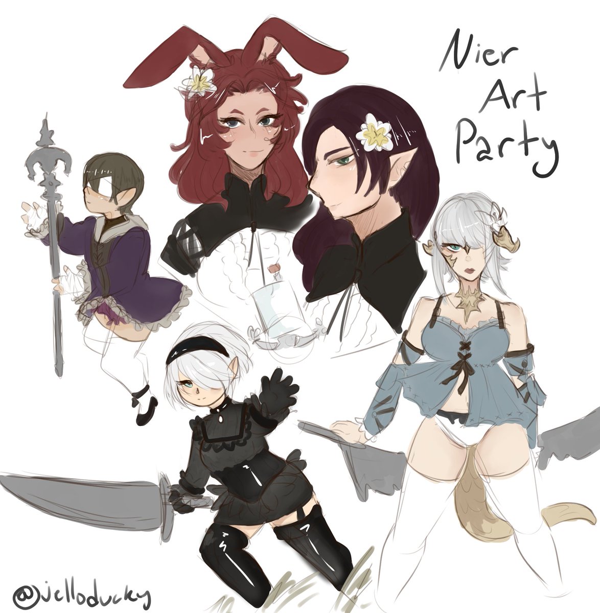 Attended my first #FFXIVART party! I... Started losing steam a bit but I tried, ok ;n; #AetherArtParty #NieRArtParty