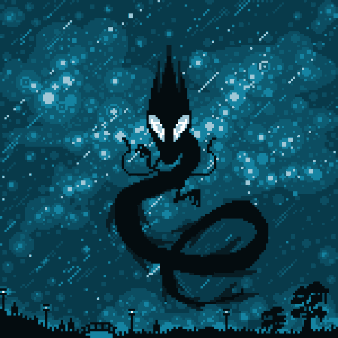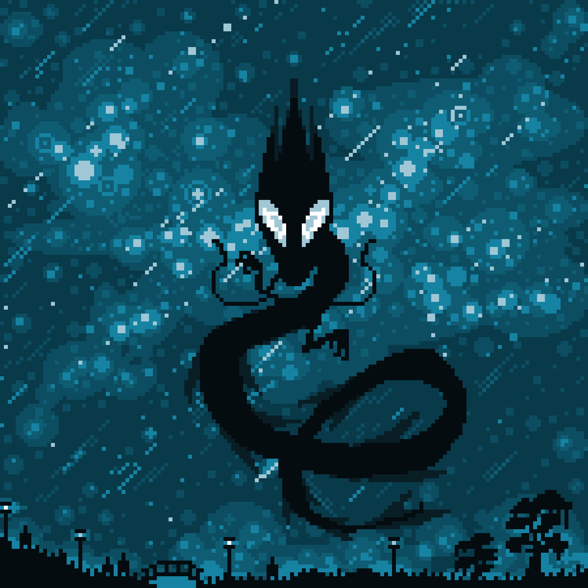 #stars for day 245 of @Pixel_Dailies I missed drawing #dragon serpents #pixelart #pixel_dailies #digitalart #nightsky