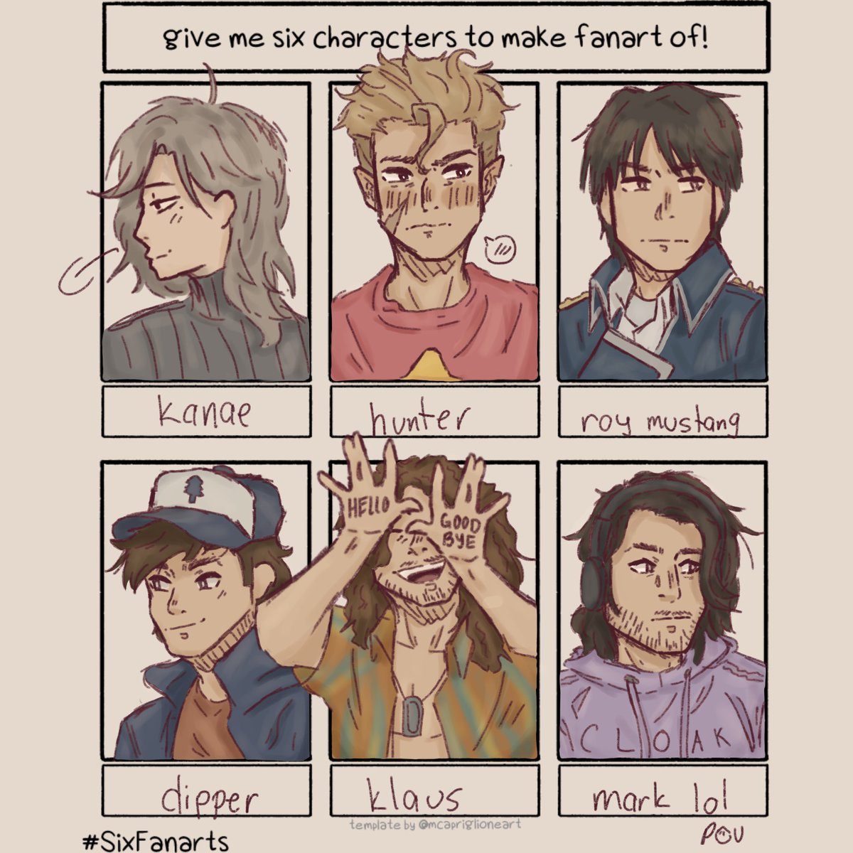 late to the trend lol #SixFanarts #nijisanjitwt #kanae #TOH #HunterToh #FullmetalAlchemist #RoyMustang #GravityFalls #dipperpines #TUA #klaushargreeves #markiplier
