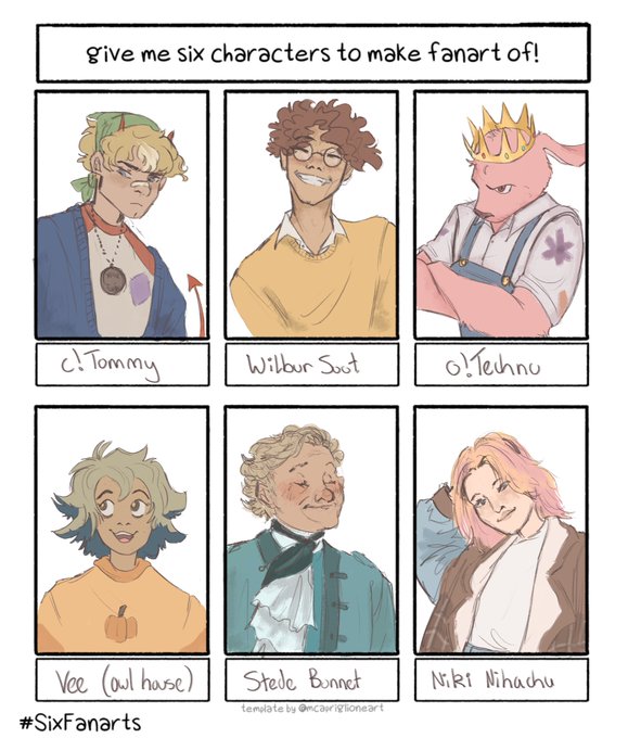 first sheet of this challenge! if ur character didnt make it, they’ll be on the second one i’m making #tommyinnitfanart #wilbursootfanart #technobladefanart #nikinihachufanart #toh #ofmd