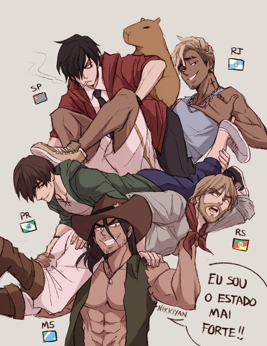 MS: Eu sô o estado mai forte!! RS: Paraná, tira a mão da minha bunda! PR: Seu pé tá na minha cabeça, Rio! RJ: Salve, rapaziada 🤙 SP: Capivara?! #OCestadosBR #NikkiyanOC
