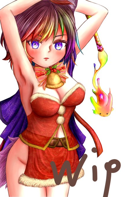クリスマスとっくに終わったけどクリスマスっぽいの描いてます。着色!!! あとは背景です。 #ninjart #イラスト #NFT #NinjaDAO #NinjaDAOファンアートコンペ #絵柄が好みって人にフォローされたい
