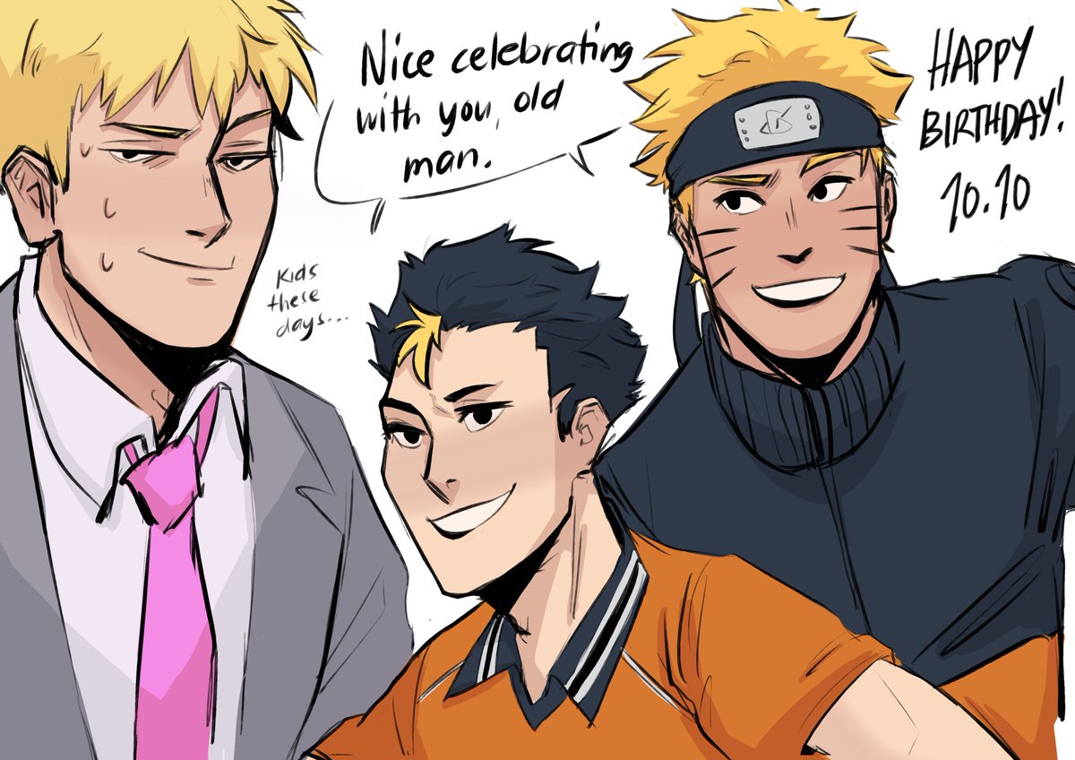 The Seventh Hokage, the Guardian Deity of Karasuno, and the Greatest Psychic of the 21st Century walk into a birthday party and bully the adult because that's just how it is Happy birthday to #uzumakinaruto #nishinoyayuu and #reigenarataka!