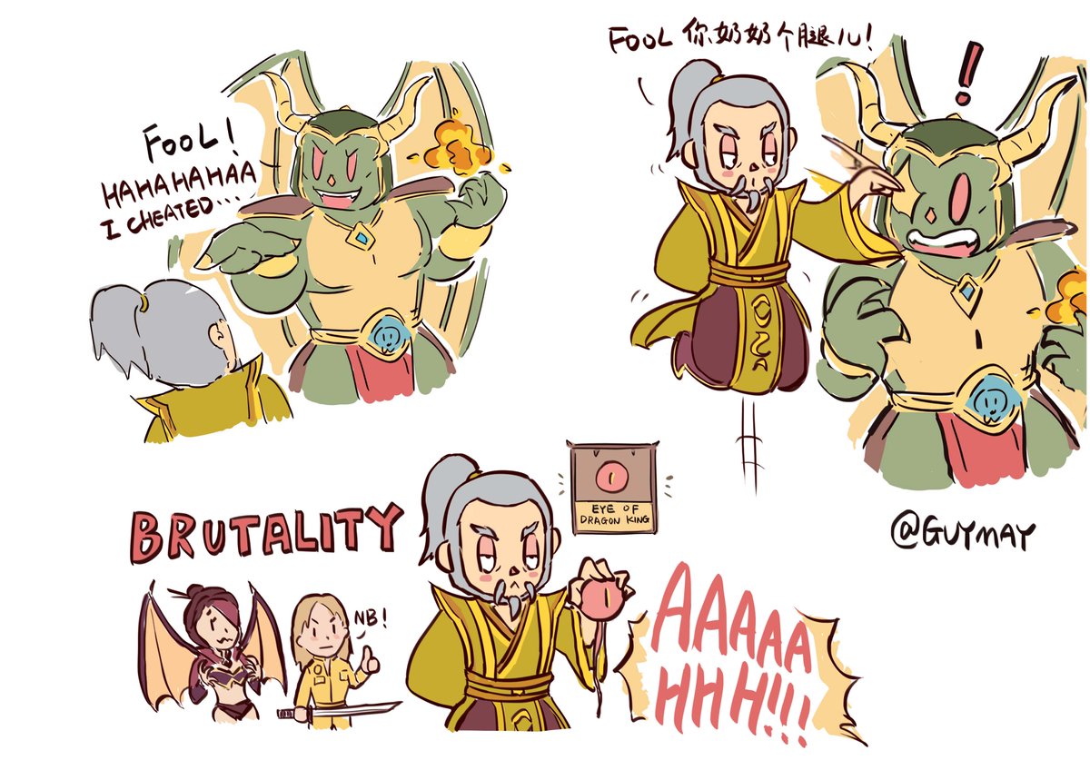 #Shujinko's design inspiration is from #KillBill2 #PaiMei, so why not put some movie references on him…🤭 A good thing is Shu's grandmaster vibe and PaiMei's fiercious has been transferred on MK11 #Shangtsung But I still want Shu back #mortalkombat #Onaga #Nitara #fanart #chibi