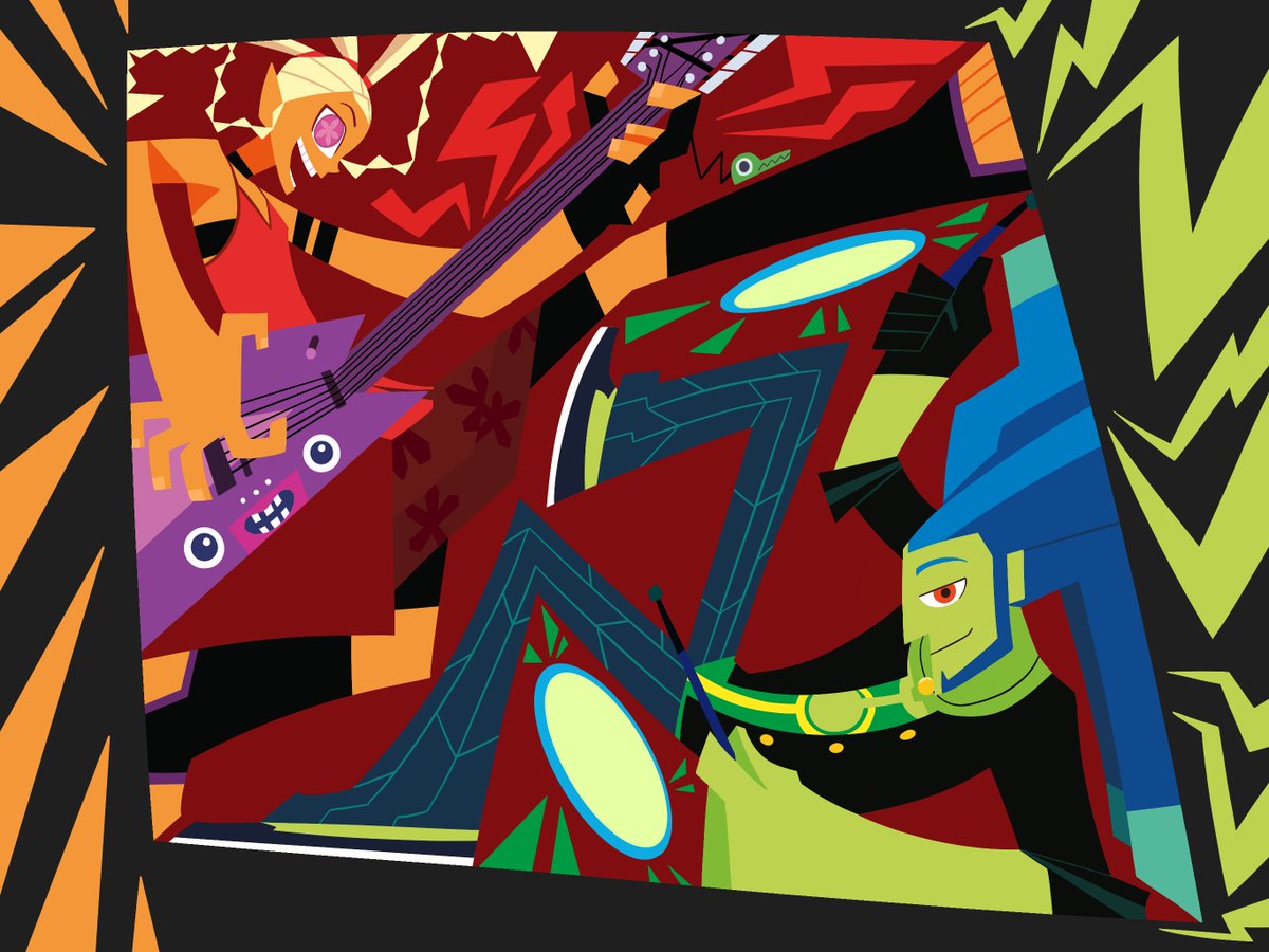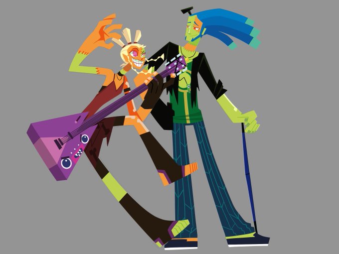 先週ハマってクリアしたので初描きの勢いに任せて応募しました!彼らが好きです!住人になりたい! #NoStraightRoads #NSREncoreEdition #nostraightroadsfanart #NeonJ #DJSS