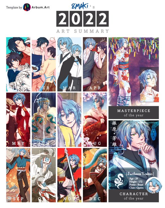 ลงรวบเลยละกัน เราแปดมากินะคะ งานตลอดปีที่ตั้งใจให้มีภาพสีทุกเดือน ได้วาดฟูลสเกลเยอะขึ้นแบบมากๆ และการหาเรฟเสื้อผ้าก็เยอะกว่าแต่ก่อนด้วย ได้ไปลงตี้วาดที่สุดท้ายพิมพ์เป็นไพ่ ได้ชาเลนท์ท้าเดธไลน์ไปหลายรอบ #Artsummary2022 #2022年を振り返る #NoTraceNoHardrefNoAi_IamRealArtist
