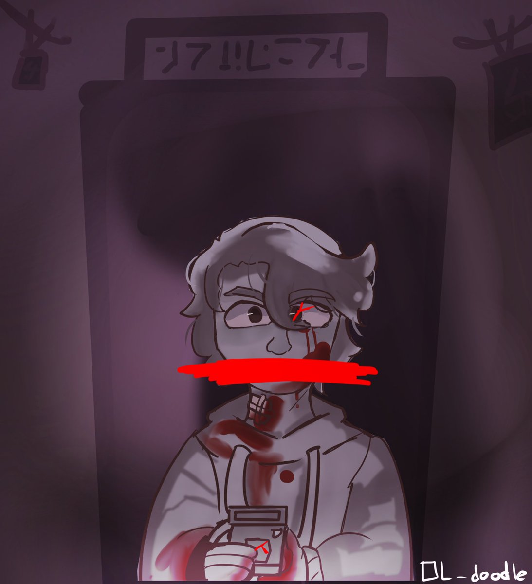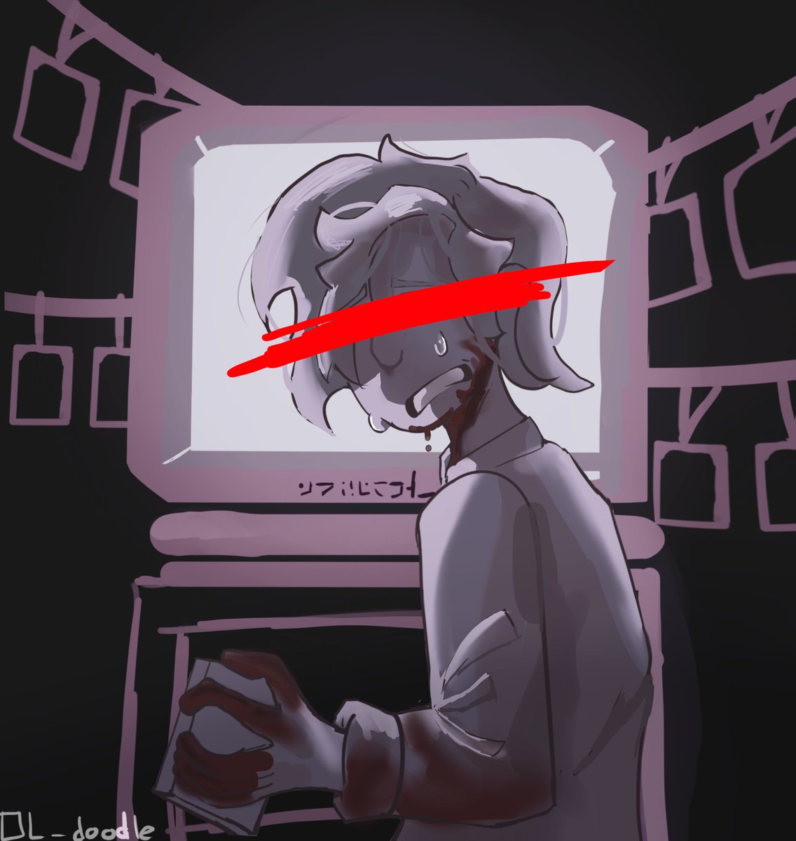 // eyestrain , blood ,,, a lot of blood CONGRATS ON 37K, NOPEDOG!! This was so much fun! It also really helped me figure out angles n' stuff, so that's neat :D #Nopedog37kDTIYS #generationlossfanart #ranboofanart #tubbofanart