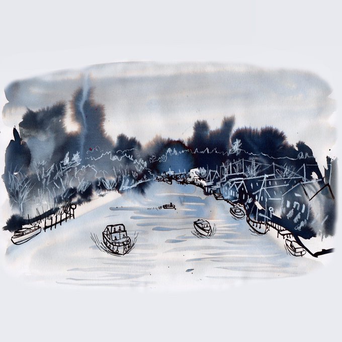 Another inky painting of the River Yare. #NorfolkBroads #riverlandscape #ink #painting #ArtistOnTwitter #thedailysketch