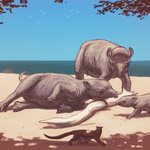 Once in a while I have to remind people that #Numidotherium is a thing. A very basal, surprisingly large proboscidean with melon head, sprawled legs, browsing habits and potentially sexual dimorphism. An absolute delight to draw.