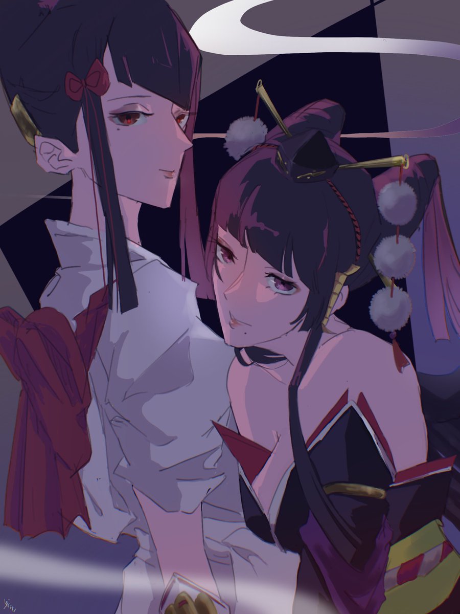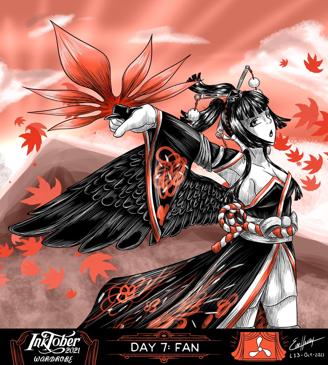 Day 7: Fan Starring the Indigo Widow: Kuroi Arane © Me Dressed as the Naughty Tengu Princes: Nyotengu from Dead or Alive © Tecmo #inktober2021 #araneidols #kuroiarane #DeadOrAlive #nyotengu