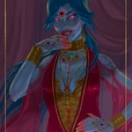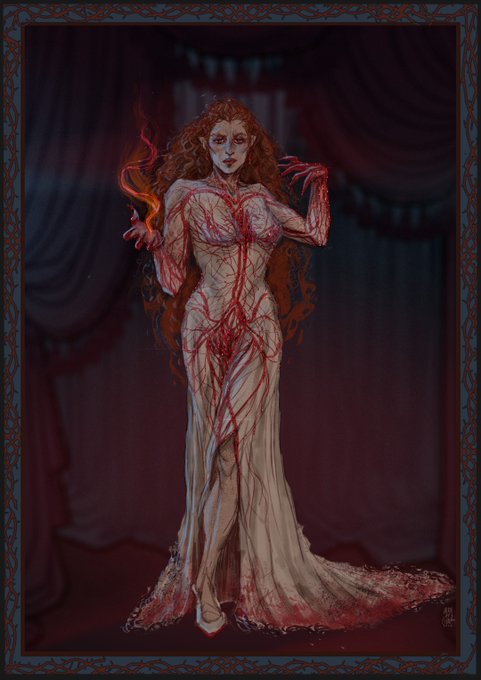 Some know her as Robin, some as Syorsha or Desirat's Chosen, but she arrives at the #OCGala2022 in her blood vessel inspired gown ready to heat things up a lil bit;) (bgr and event by @/VickyPandora)