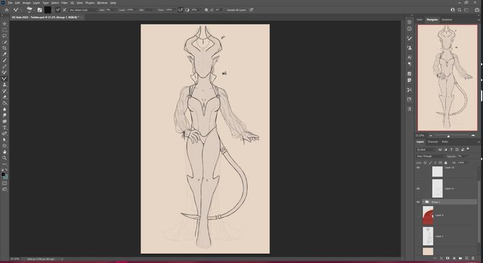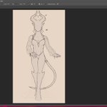 So far, here is the linework I've done on my #OCGala2022 piece! I forgot how long it takes to draw finished artwork. I used to be able to stay up late and draw slightly detailed sketches, now I'm old and go to bed 12am at the latest 😂 #wip #tiefling #dndart #DnDcharacter