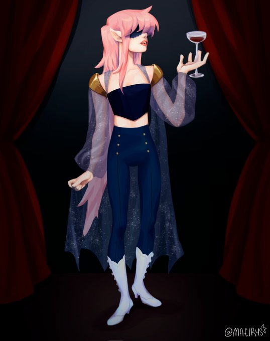 Late but here it is my entry for #OCGala2022 !! I created a new vampire oc just for this, I decided to call them Cherry.