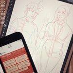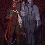 Drew a last gala quickie that @maxxdicking coloured in "monochrome" 'cos he still hasn't decided on his colours...his tiefling rogue and my fallen aasimar cleric (sorry not genasi!). Thanks to @VickyPandora for a fun #OCGala2022 (and bg)! #dndart