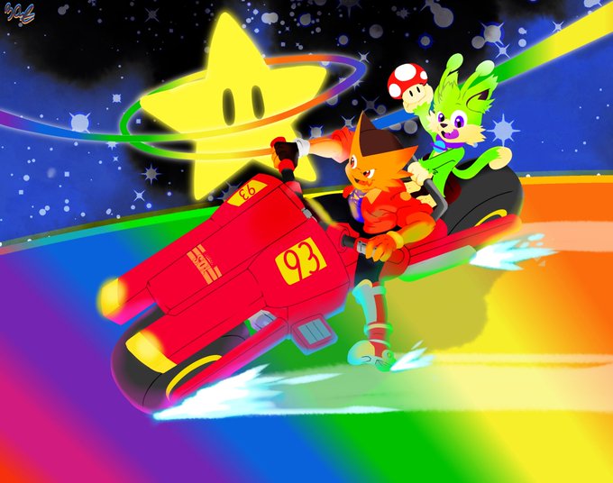 🏍RAINBOW ROAD 64 🌈 One of the games that marked my childhood, with one of the most memorable and nostalgic circuits of all. #DigitalArtist #digitaldrawing #ArtistOnTwitter #ibispaintX #OCSuperCircuit2022