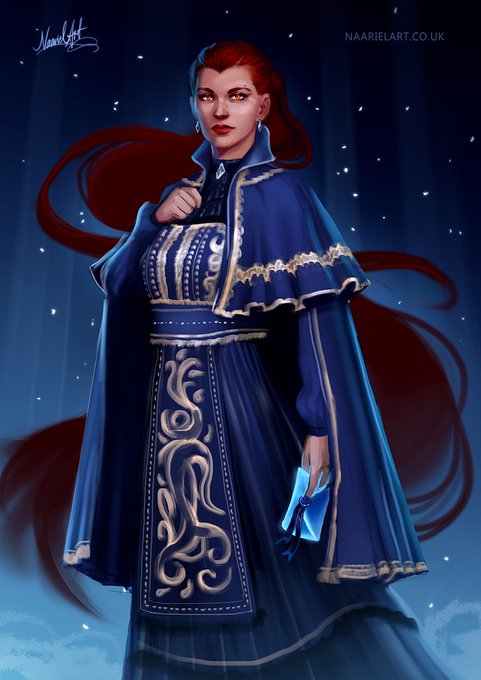 Merry Christmas to all who celebrate it!❄️ Here's my very late addition to the #OCWinterBall featuring my tief swashbuckler Maeve! I haven't gotten to draw her in so long, this is my second time drawing her in a gown and I'm v proud of it☺️ #dndoc #tiefling #dndart #DnDcharacter