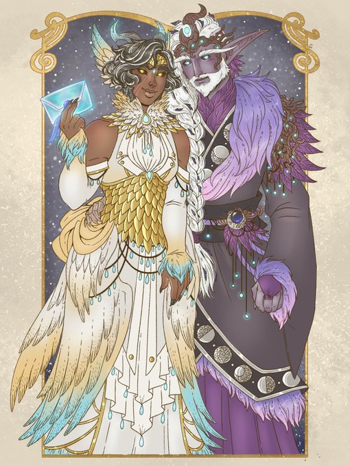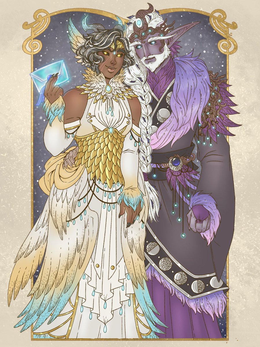 Ranah and Lunnadan are ready for the #OCWinterBall! Their outfits are based on the Gilded Cloudstrider from Bastion, and the Gloomrunner from Ardenweald. Thanks for the event @Faebelina, always a pleasure to make part of it!