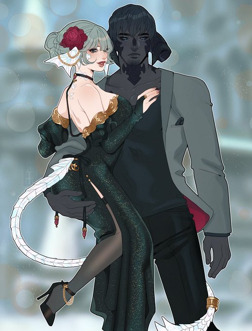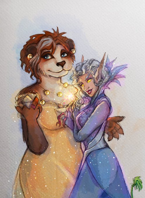 Tonfyal and Pabu on #OCWinterBall💙 Art collab by @artificialium (idea and line) and me (color) ✨ #worldofwarcraft #pandapabu #tonfyal #bloodelf #pandaren #ArtistOnTwitter