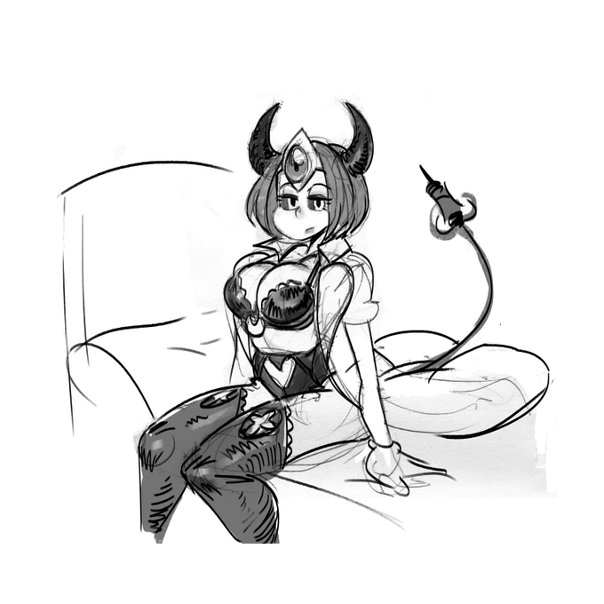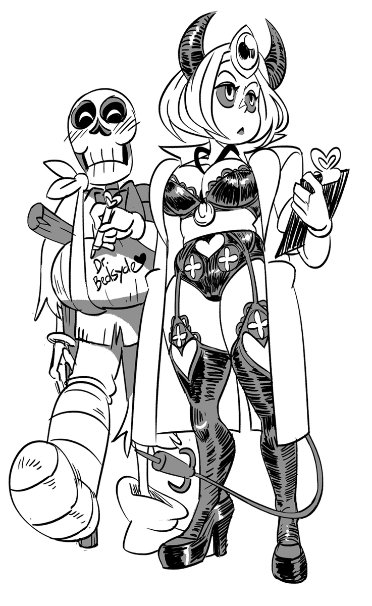 Dr. Bedsyde! The dungeon physician. A succubus that uses her paralysis tail as an anesthetic and energy-draining in reverse for health restoration. Cool and clinical, maybe even cold and detached, excellent at her job and professional. #oc_tober2021