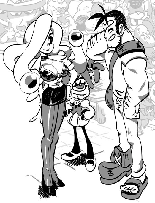 Turns out the adventurer Yushar is a fan of her back from her days as Brave Buster Maylgeiz. A little bit star-struck ! Here's a look at her family- her husband and dungeon master, Naruholder, and their daughter Beauty. #oc_tober2021 #OC_tober