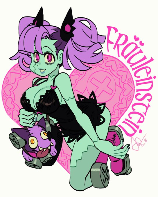 I see that #originalcharacter is trending, and since I've been poking at that kind of stuff a bunch this month, I figure I could share some ! Planning on some sticker designs. Here's one of the franken-babe, Frauleinstein. #OC #oc_tober2021