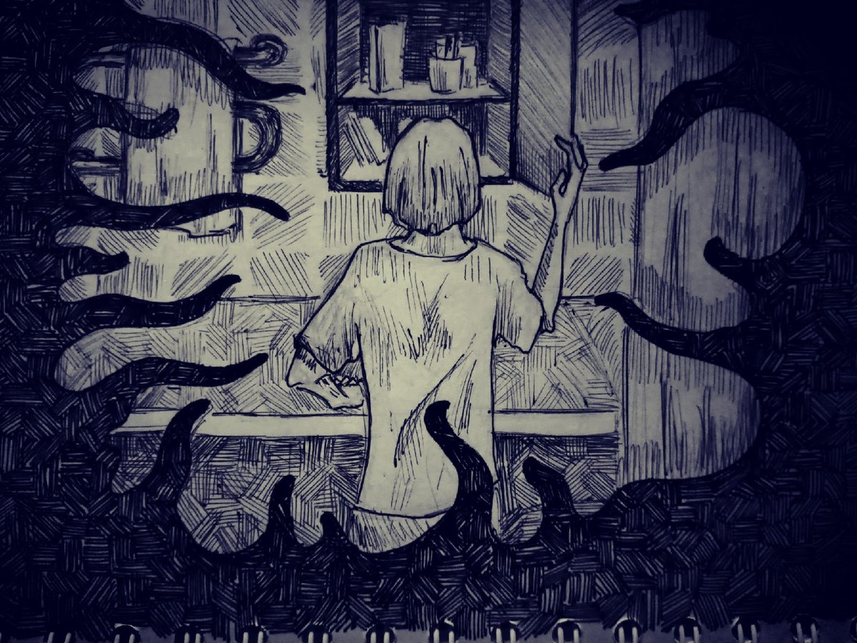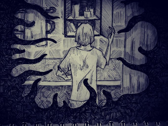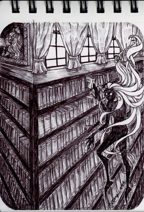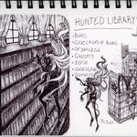 ✨🖤 INKTOBER ~ Haunted Library 🖤✨ Day 3👻… She will hunt you if you don’t put the books back properly. And she will know it if you don’t😐 #inktober2021 #ink #art #illustration #sketchbook #ballpointpen #ominous #surreal #spooky #autumn #hauntedlibrary #books