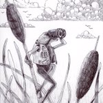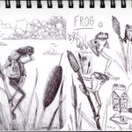 ✨🖤 INKTOBER ~ Frog 🖤✨ Day 15🐸… Tired of hopping from lily pad to lily pad, Mr. Frog looked for adventure far ahead of him… longing for something new. #inktober2021 #ink #art #illustration #sketchbook #ballpointpen #ominous #surreal #spooky #autumn #blackandwhite #frog