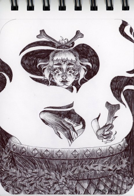 ✨🖤 INKTOBER ~ Punk Witch 🖤✨ Day 24😈… The Black Bones Witch is brewing up something wicked. #inktober2021 #ink #art #illustration #sketchbook #ballpointpen #ominous #surreal #spooky #autumn #blackandwhite #punkwitch
