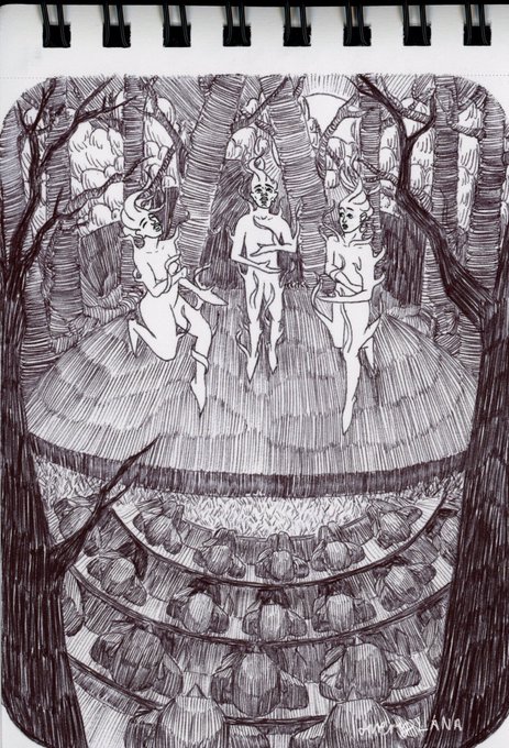 ✨🖤 INKTOBER ~ Shapeshifter 🖤✨ Day 29🦋… They enjoyed the simple pleasures in a leisurely flower-filled day… #inktober2021 #ink #art #illustration #sketchbook #ballpointpen #ominous #surreal #spooky #autumn #blackandwhite #shapeshifter