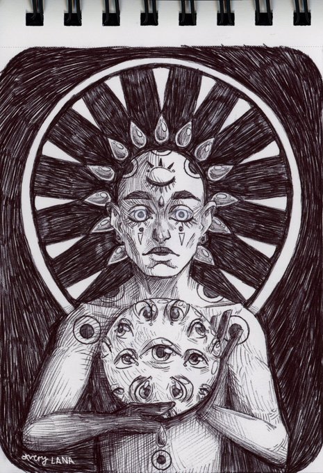 ✨🖤 INKTOBER ~ Crystal Ball 🖤✨ Day 27🔮… The crystal ball sees all… #inktober2021 #ink #art #illustration #sketchbook #ballpointpen #ominous #surreal #spooky #autumn #blackandwhite #crystalball