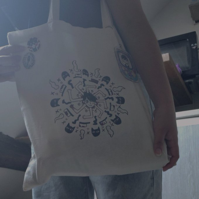 hii the pictures kinda sucks but!!! i painted a page from omori's sketchbook on a tote bag and i love it sm so i wanted to share it here 🫶 #OMORIFANART