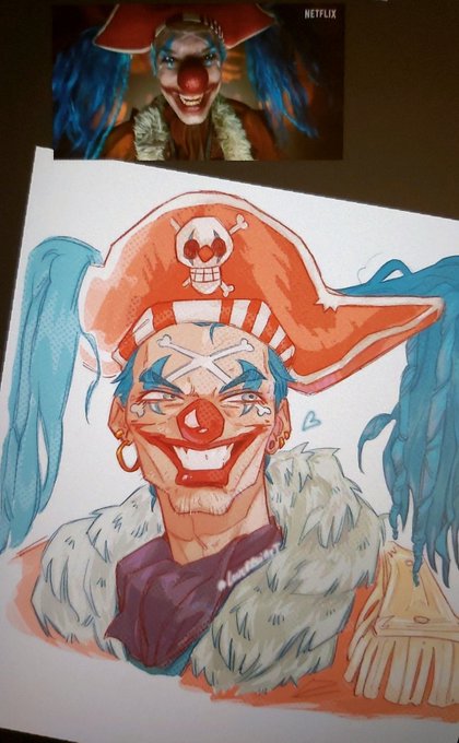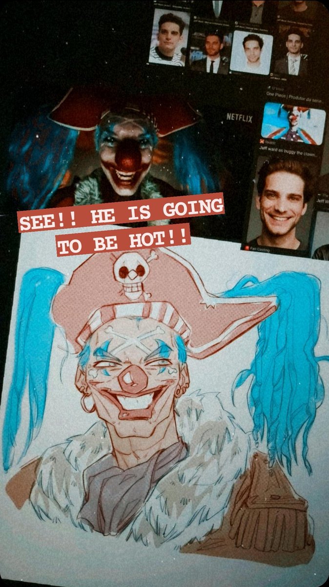 IM TIRED OF HEARING PEOPLE SAY THAT THE LIVE ACTION BUGGY IS SCARY OR UGLY!! LOOK AT JEFF (the actor) HE IS SO FAKING HANDSOME!!! so here ma doodle of Buggy based on Jeff Ward 🥴💖 #OnePieceLiveAction #doodle